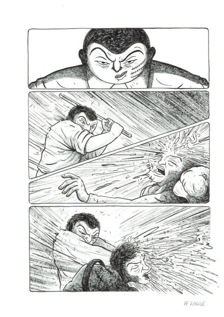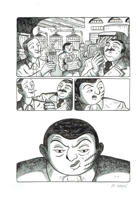 Comic art show by French comic book artist Pierre-Francois Radice. These original pieces are published in Al Capone, his first graphic novel.