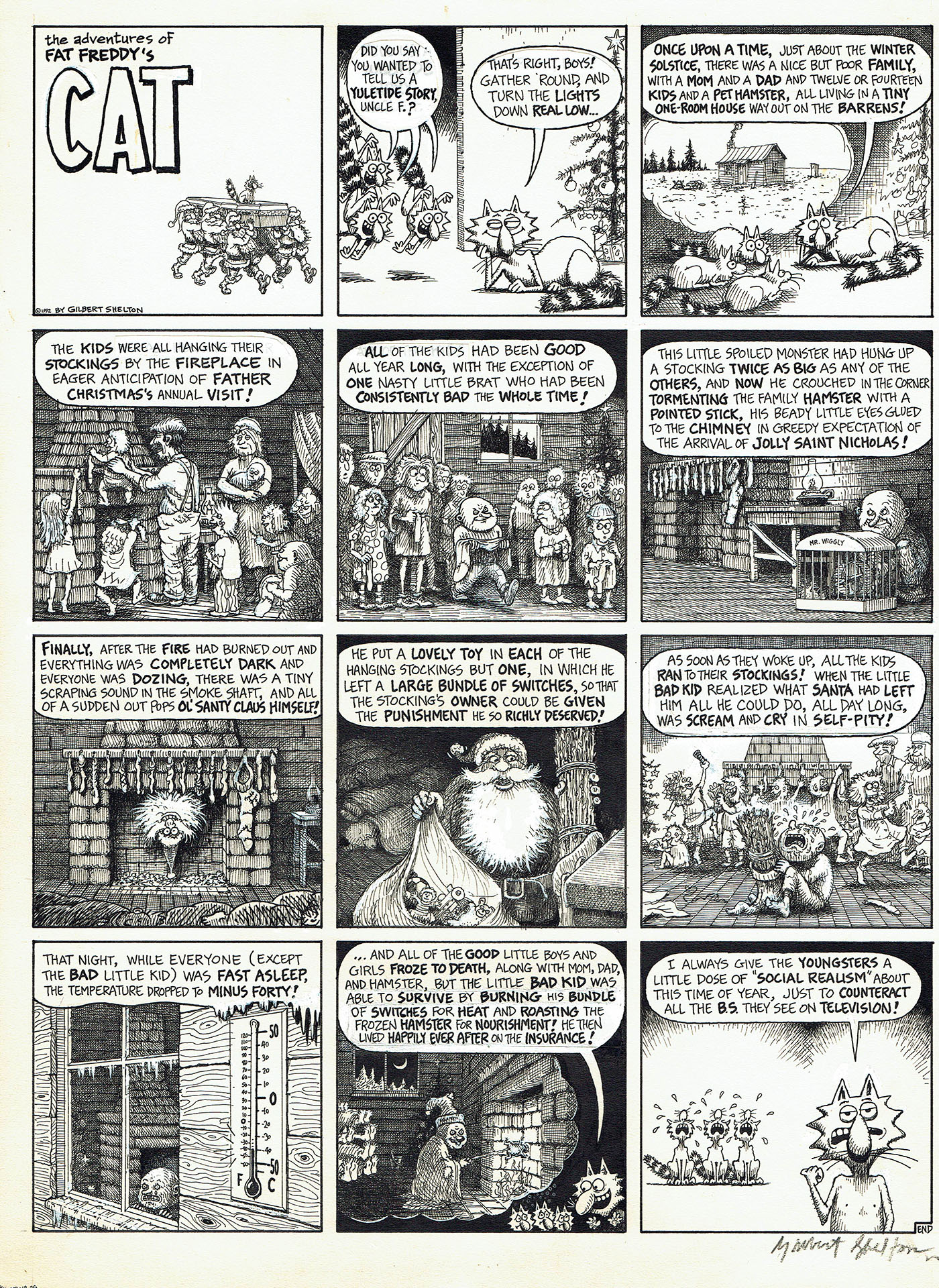 Original comic art by Gilbert Shelton : the Yuletide story.