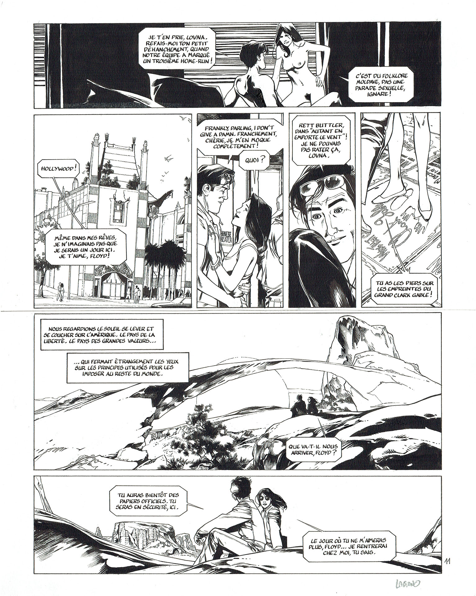 Original comic art by Hugues Labiano. Black Op, book 4, page 11.