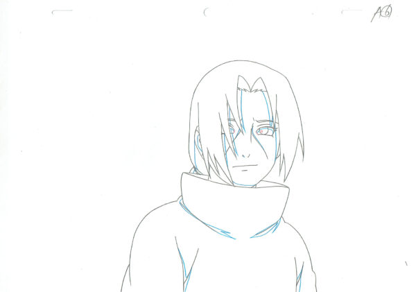 2338 – Itachi as a teenager. An original hand drawn Anime production drawing, here a douga, from the Naruto Shippuden (ナルト 疾風伝) anime series, based on the Naruto (ナルト)manga by mangaka Masashi Kishimoto (岸本 斉史). Made with graphite pencil and color pencils on animation paper. Pencilled by a Studio Pierrot animator. Slight handling wear from production. The douga is an original animation production drawing. All animation art and production drawings (layout, douga, genga, cel) sold by Galerie de la Bande Dessinee are safely sealed in archival bags with acid-free backing boards to keep the production art protected. Original production drawings are very desirable, because it is at this stage that the animators really brought the characters to life. Original production drawings are a spectacular addition to any art collection, and a great way to enjoy the artistry behind your favorite anime and animated series.