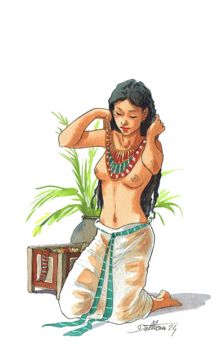 Isabelle DETHAN Égypte antique – illustration – Égyptienne au collier