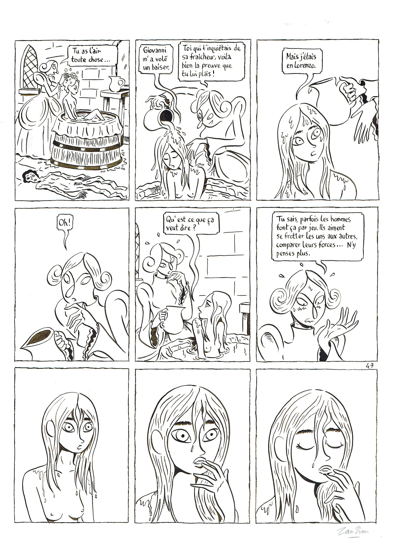 Planche de BD originale du dessinateur français Zanzim. Page 43 de l’album « Peau d’homme », publié aux éditions Glénat. Cette planche originale de bande dessinée est réalisée à l’encre. Les originaux BD sont des œuvres d’art uniques, qui disposent de la bande dessinée publiée comme référent.