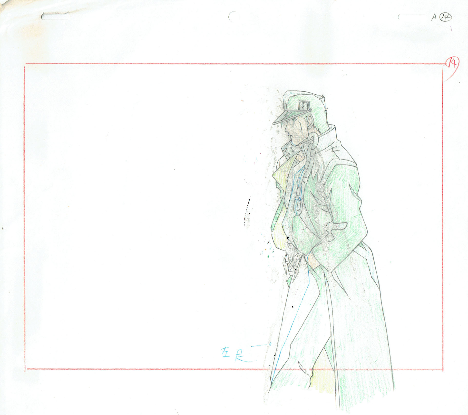 Vente d’un dessin original d’animation japonaise, ici un doga (douga), de l’anime JoJo’s Bizarre Adventure.