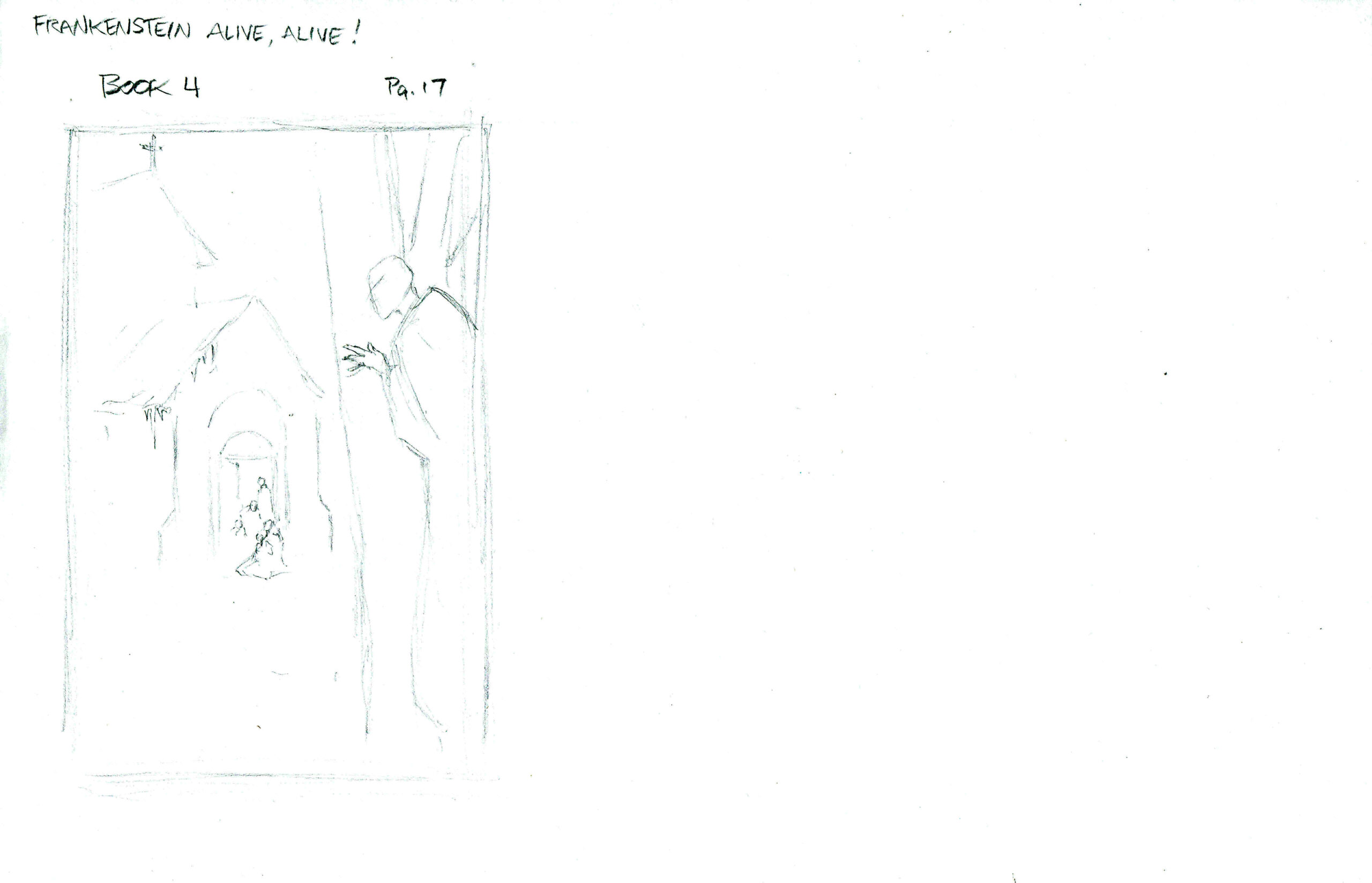 Dessin préliminaire pour la page 17 du quatrième livre de la mini-série Frankenstein Alive, Alive !